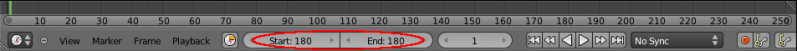 Screenshot showing the timeline in Blender 2.62, which is used to set the frames to export with the MD5 exporter.